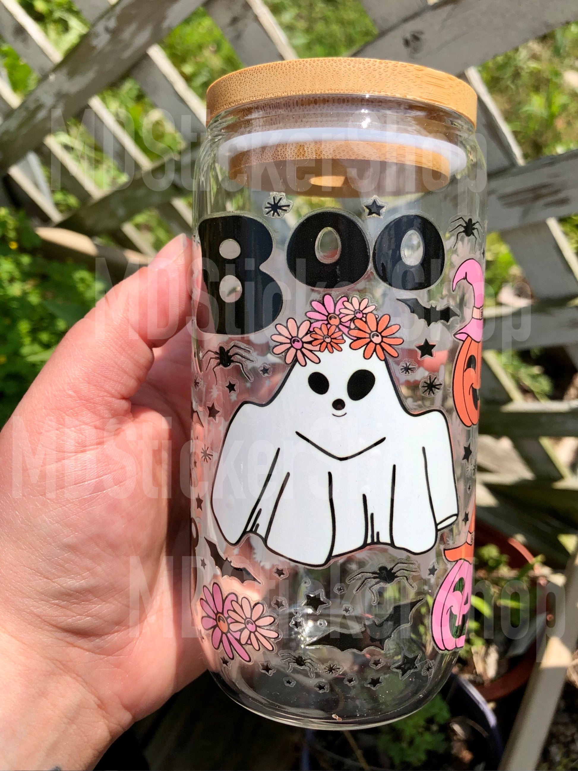 Boo Ghost Halloween Icons Beer Can Glass Cup