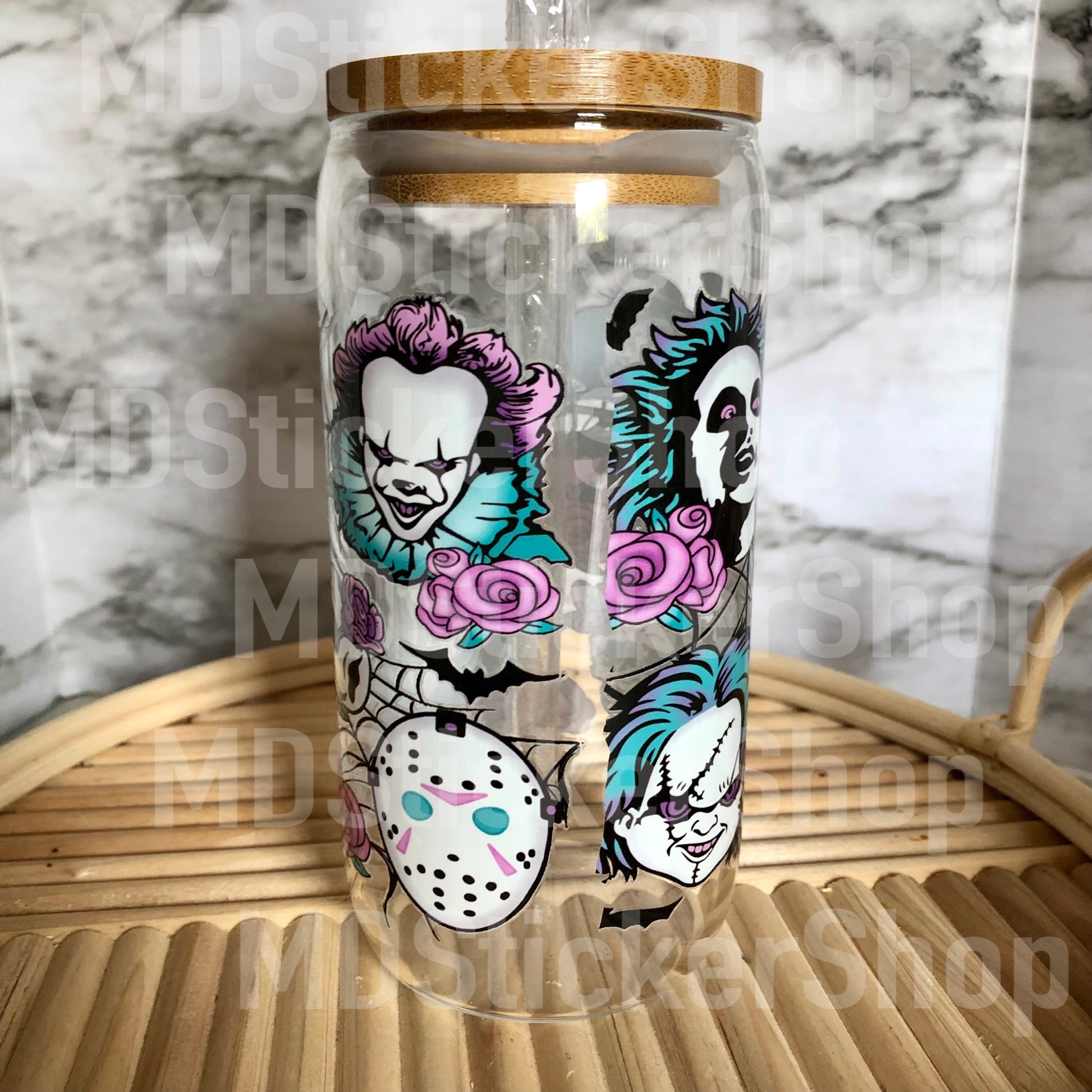 Horror Characters Halloween Beer Can Glass Cup