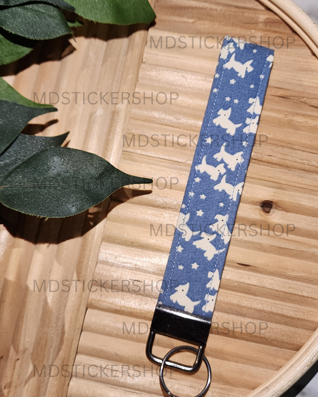 These wristlet keychains are handmade with 100% cotton lined with interfacing for durability. Each keychain is unique in appearance and may show a variation in fabric print due to the fabric cut and how the print repeats.