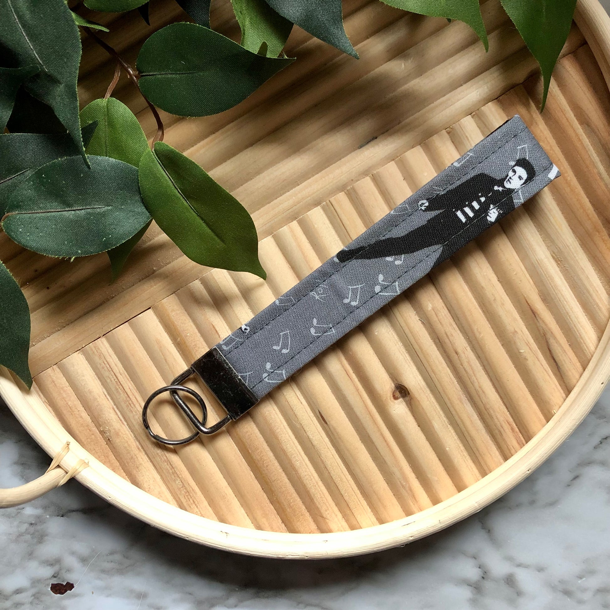 Elvis Presley Print Fabric Wristlet Keychain, Key Fob