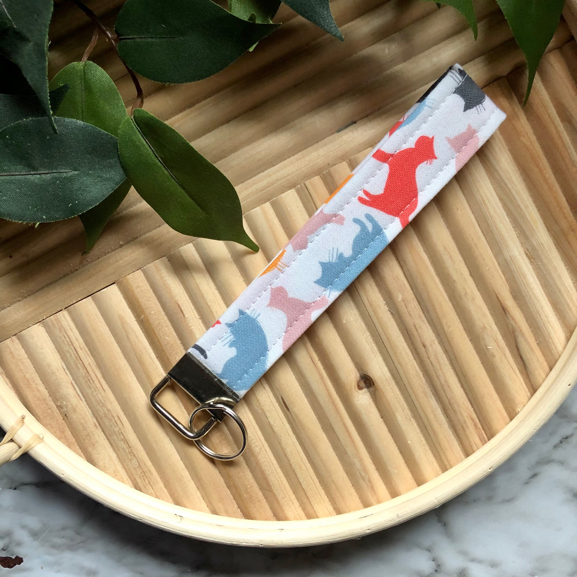 Colorful Cats Print Fabric Wristlet Keychain, Key Fob