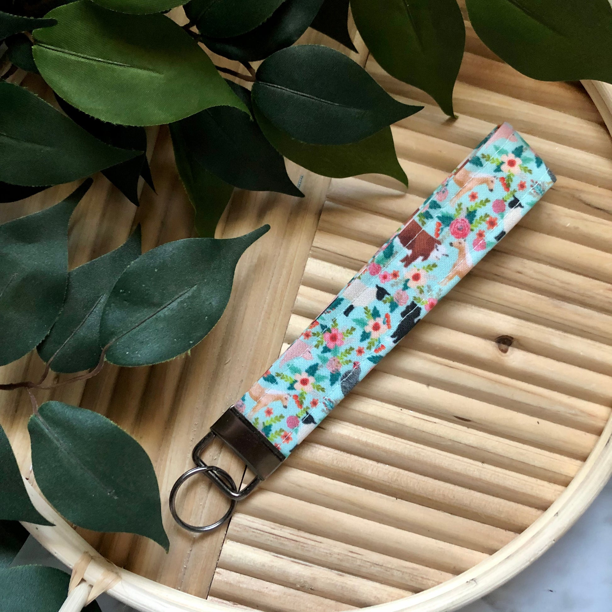 These wristlet keychains are handmade with 100% cotton lined with interfacing for durability. Each keychain is unique in appearance and may show a variation in fabric print due to the fabric cut and how the print repeats.