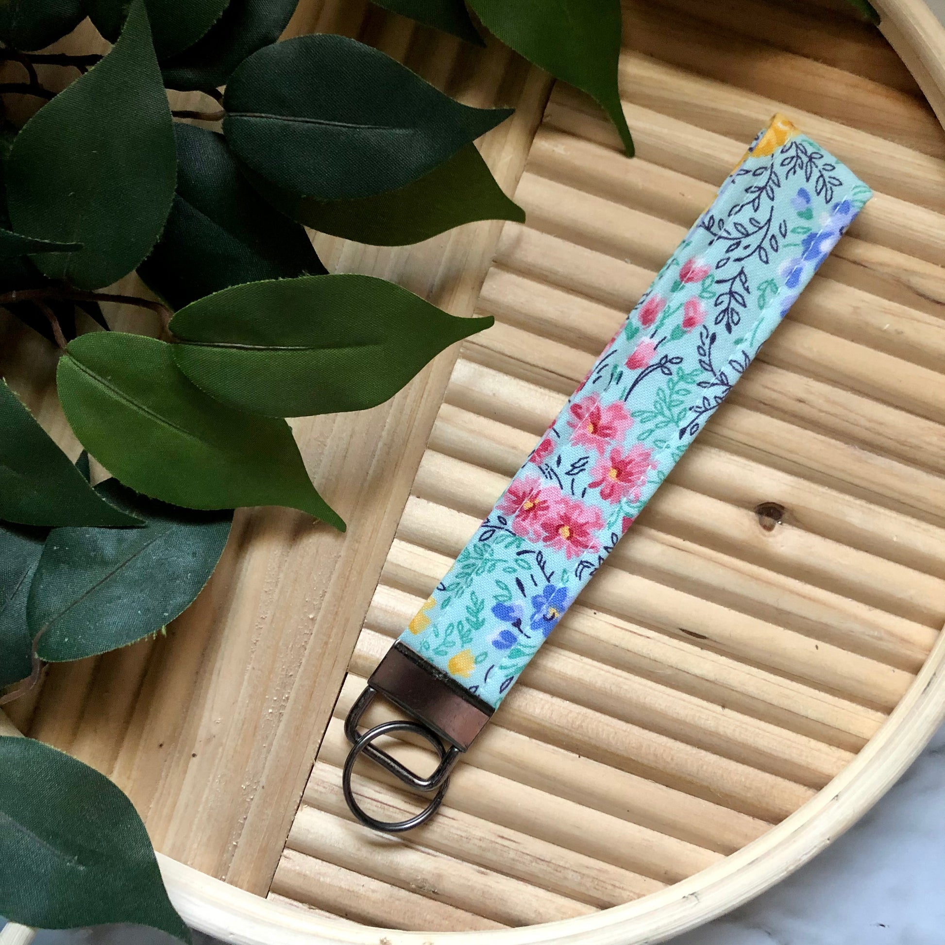 These wristlet keychains are handmade with 100% cotton lined with interfacing for durability. Each keychain is unique in appearance and may show a variation in fabric print due to the fabric cut and how the print repeats.