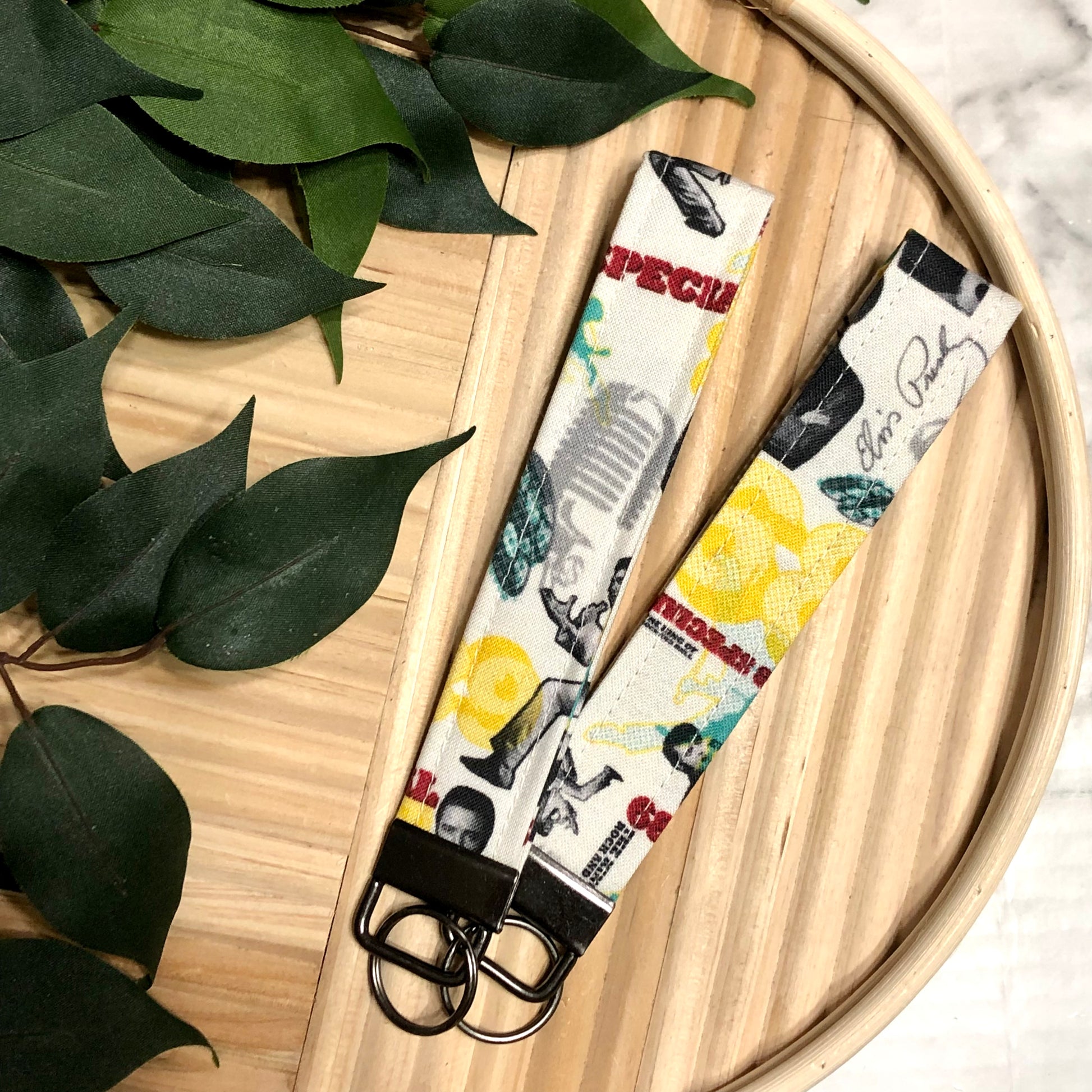 Elvis Rock & Roll Print Fabric Wristlet Keychain, Key Fob