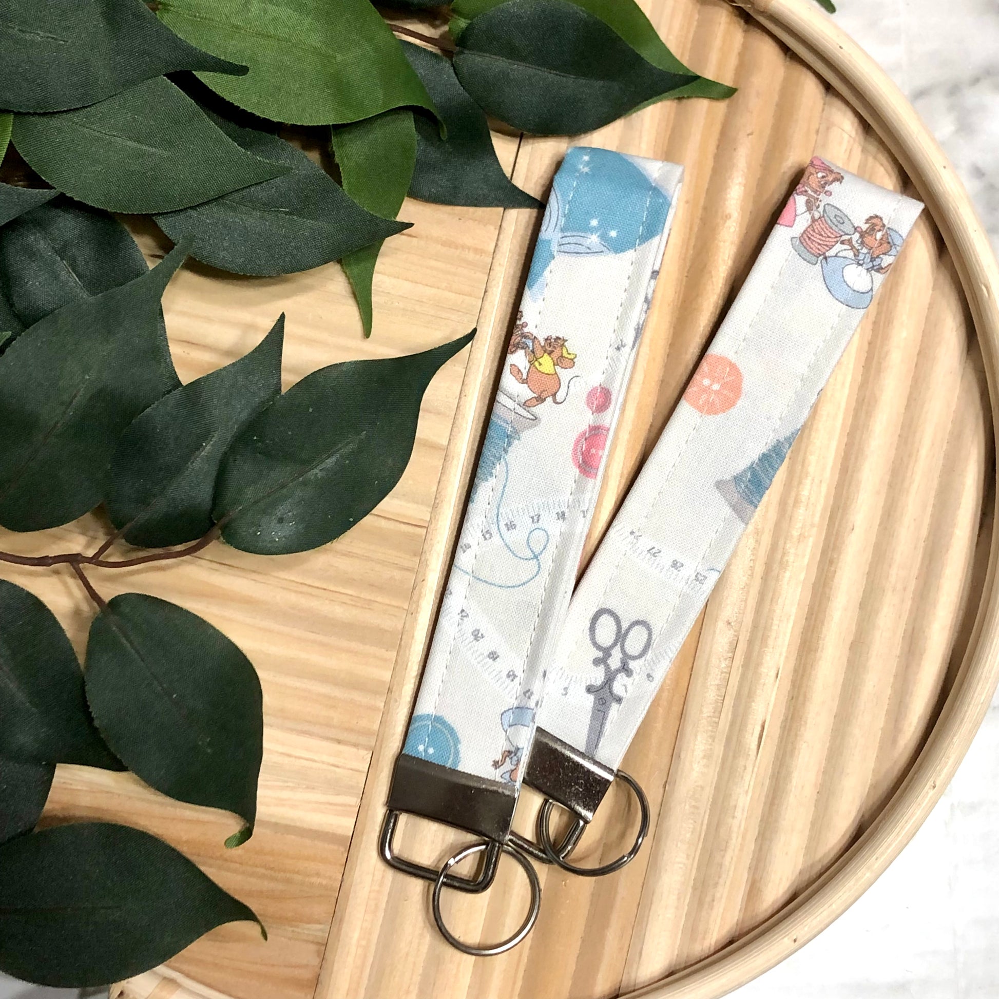 Cinderella Mice Print Fabric Wristlet Keychain, Key Fob