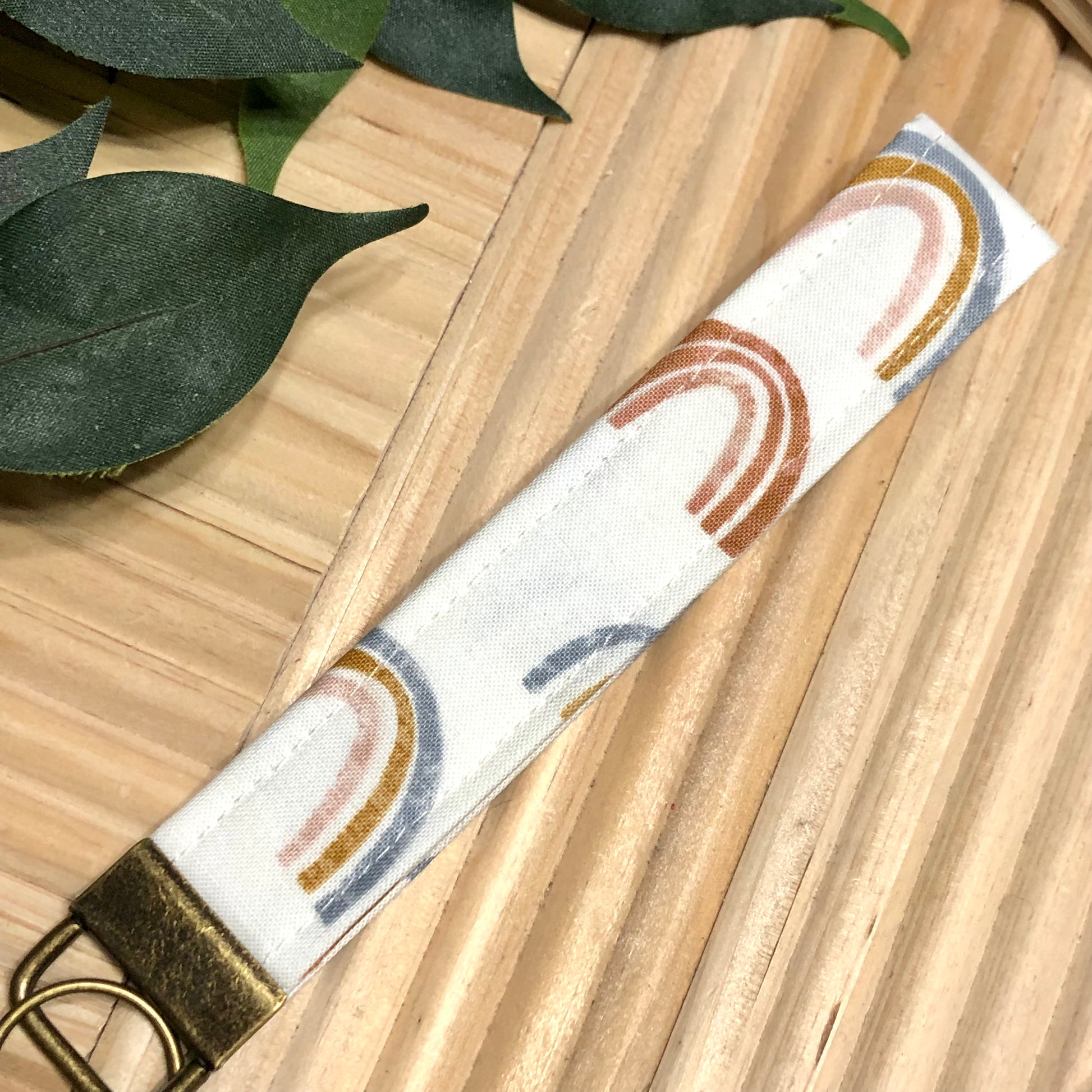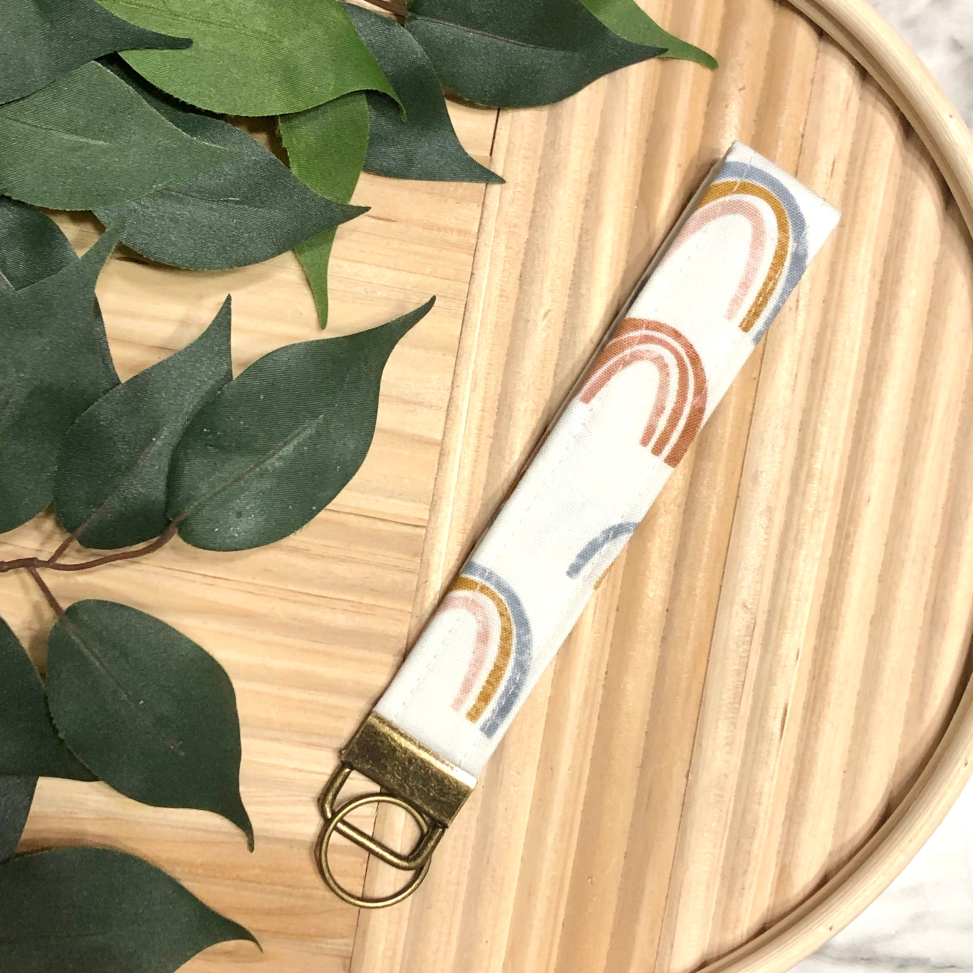 Natural Rainbow Print Fabric Wristlet Keychain, Key Fob