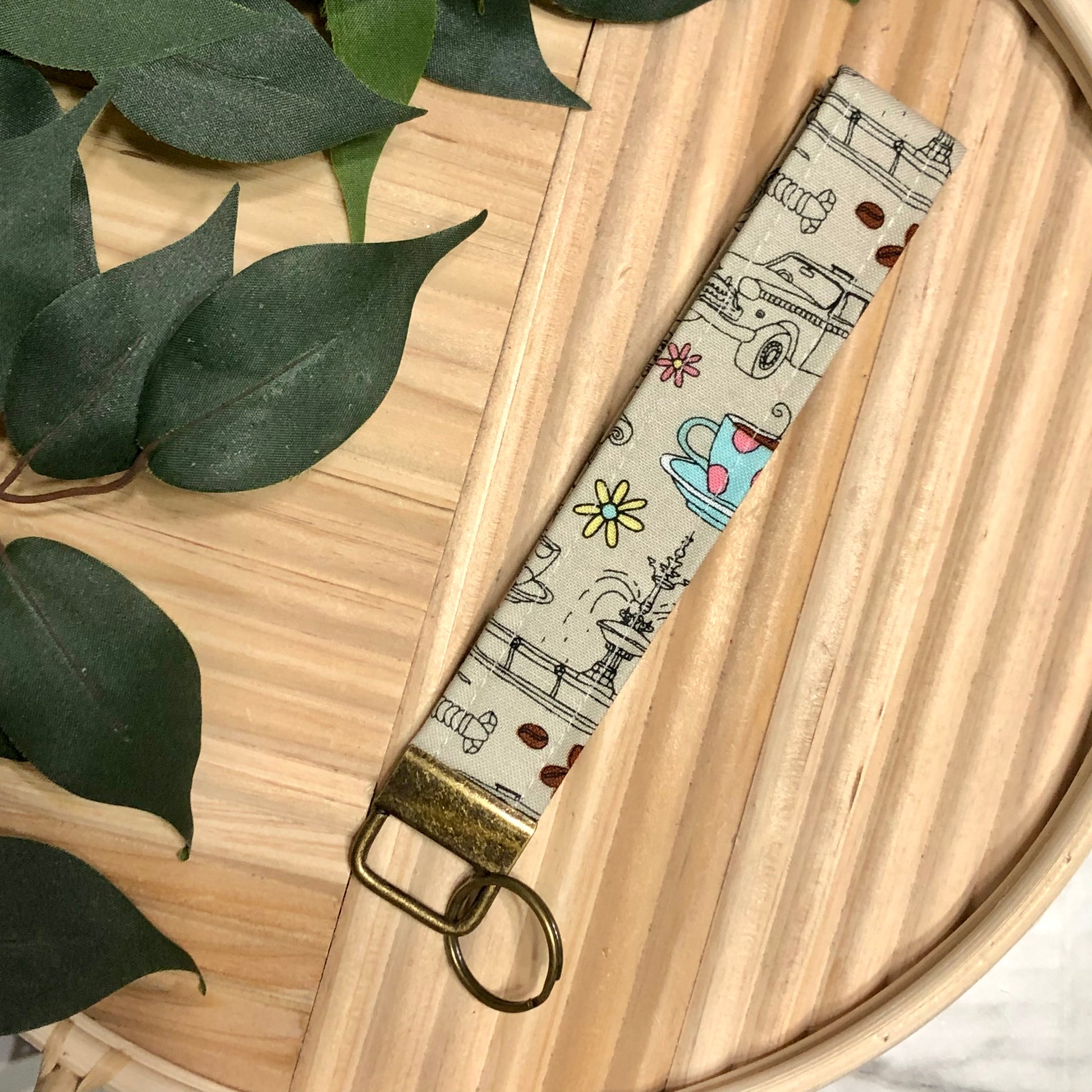 These wristlet keychains are handmade with 100% cotton lined with interfacing for durability. Each keychain is unique in appearance and may show a variation in fabric print due to the fabric cut and how the print repeats.