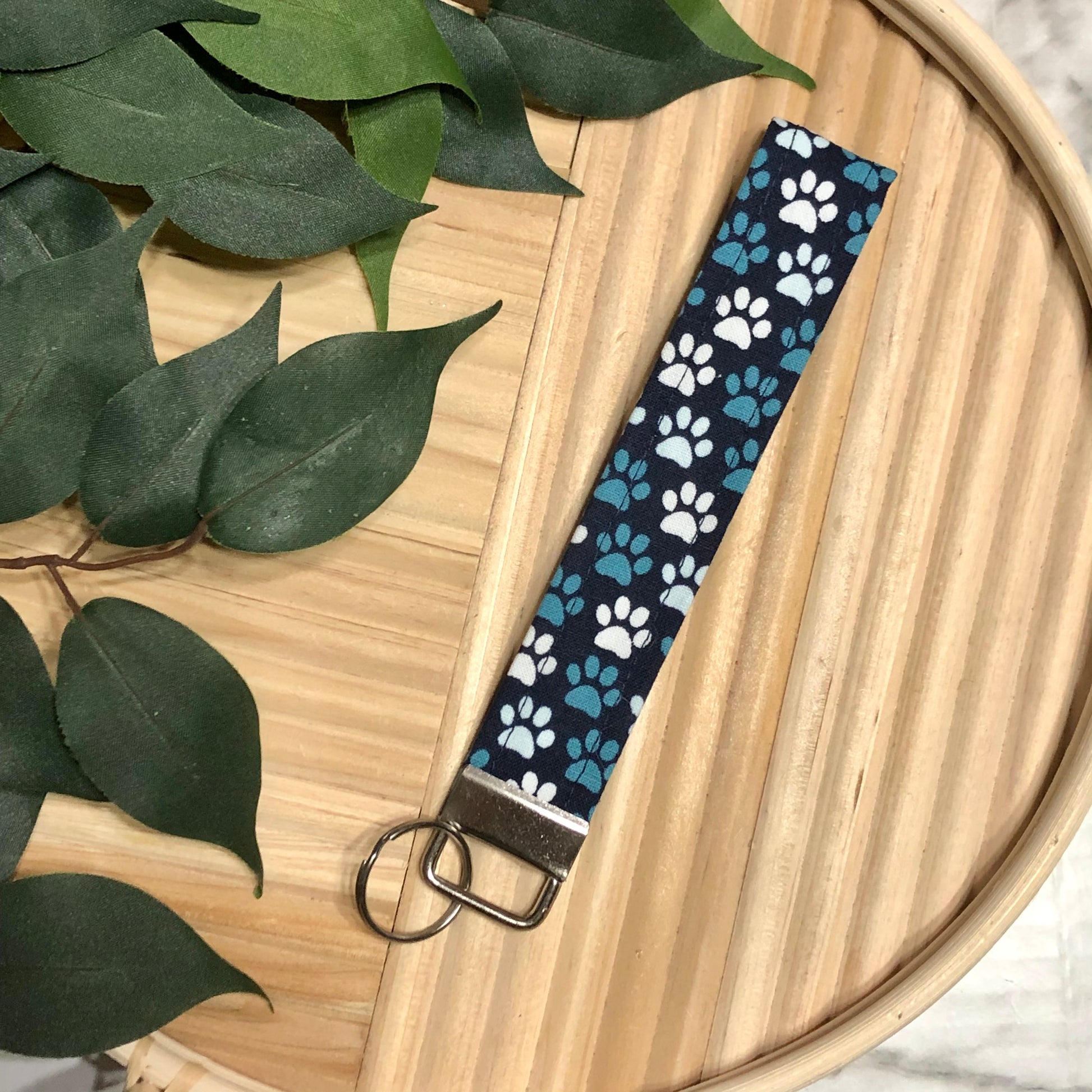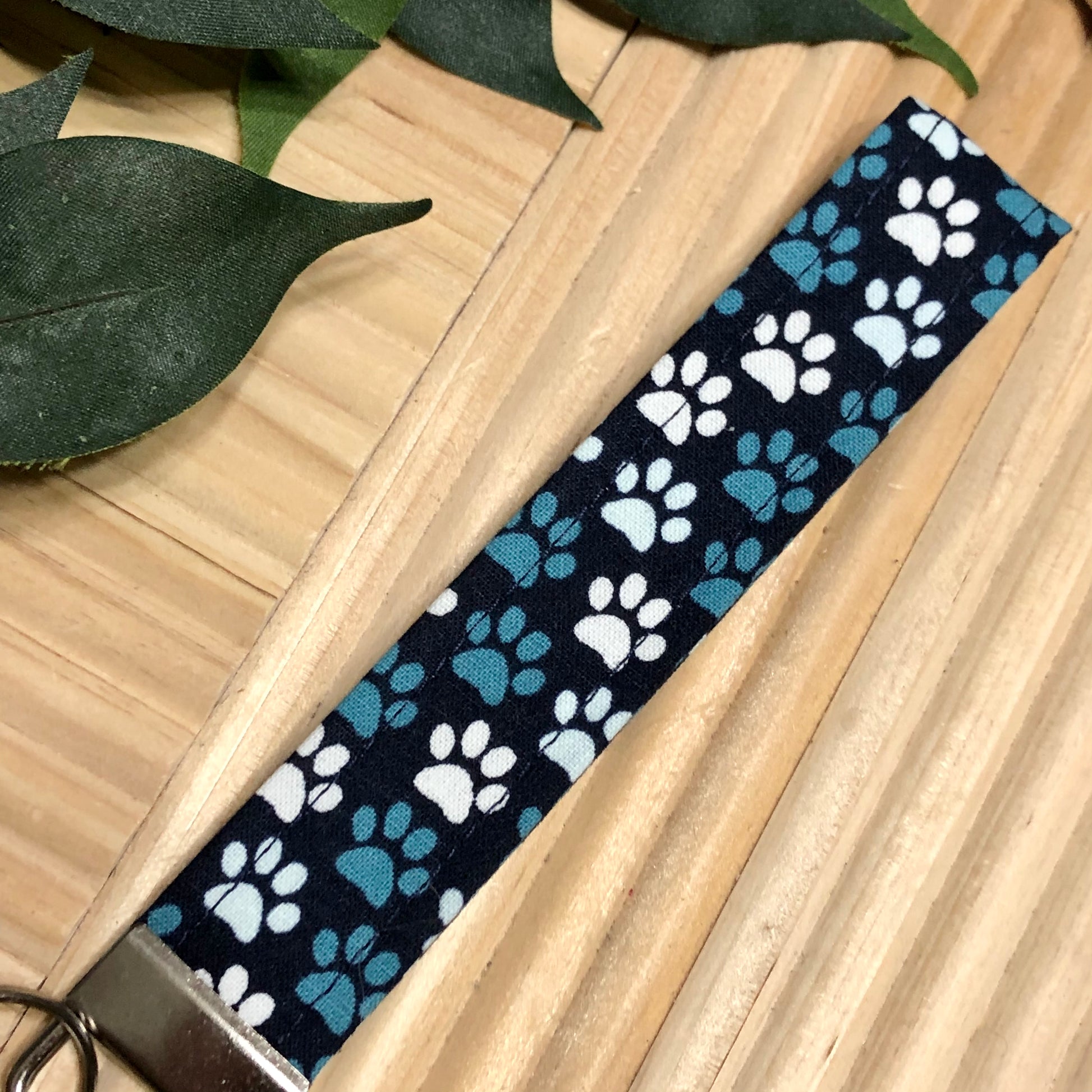 Navy Paw Print Fabric Wristlet Keychain, Key Fob