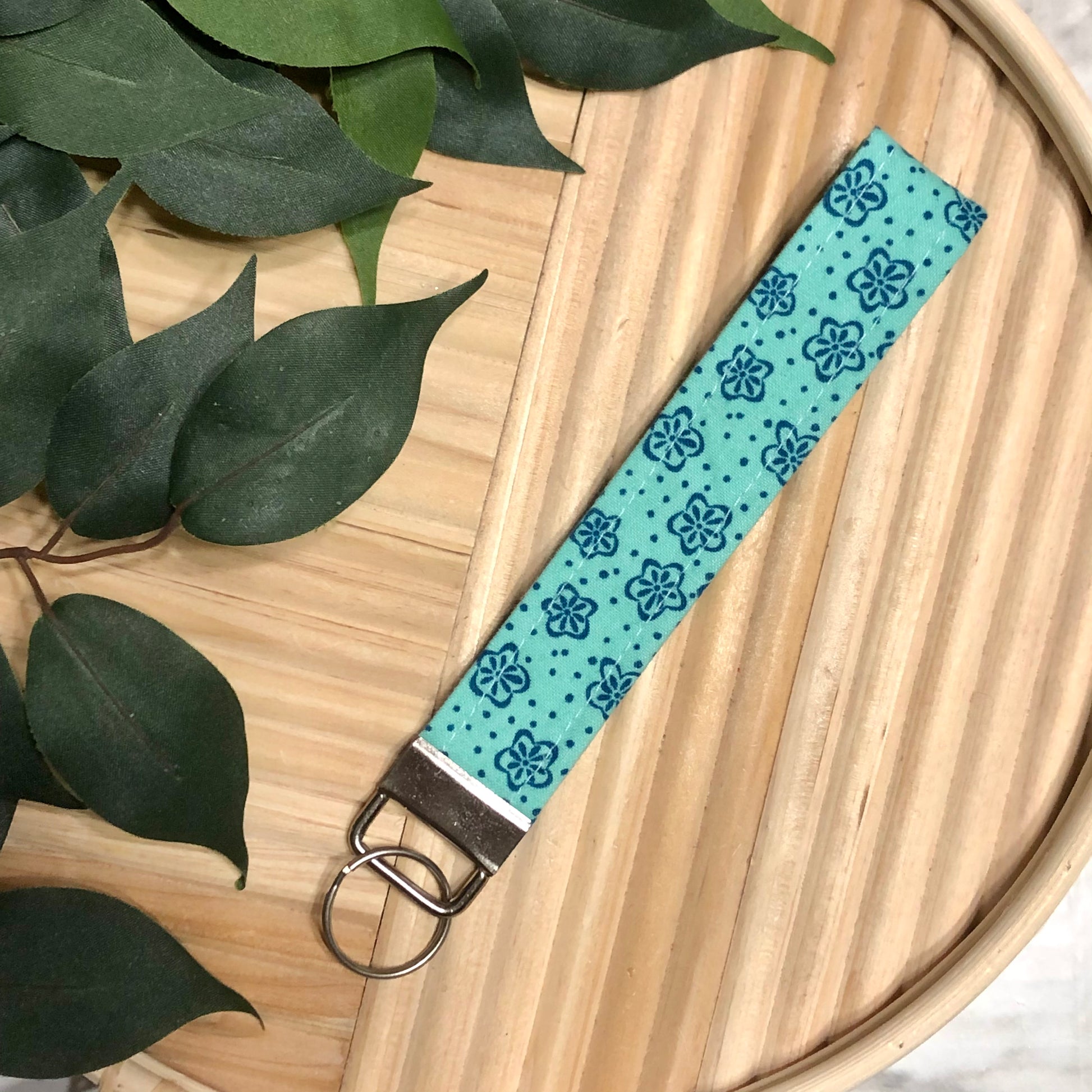 These wristlet keychains are handmade with 100% cotton lined with interfacing for durability. Each keychain is unique in appearance and may show a variation in fabric print due to the fabric cut and how the print repeats.
