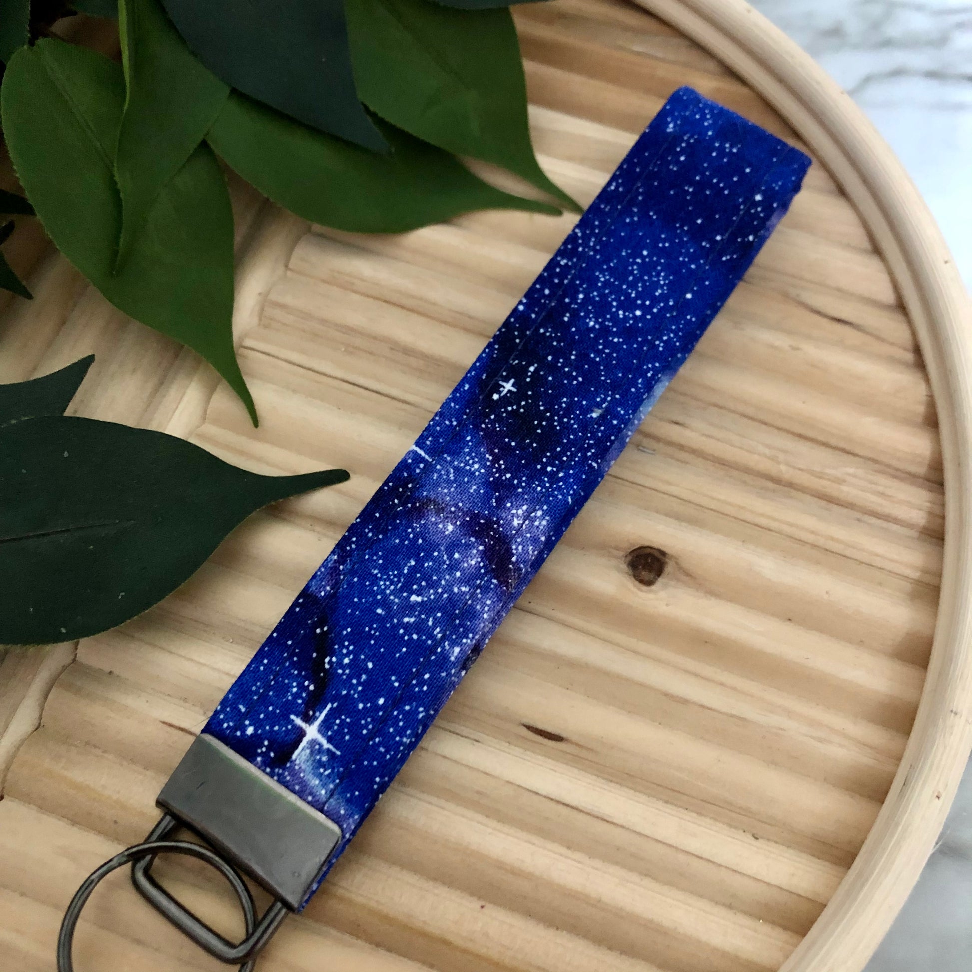 Midnight Galaxy Print Fabric Wristlet Keychain, Key Fob