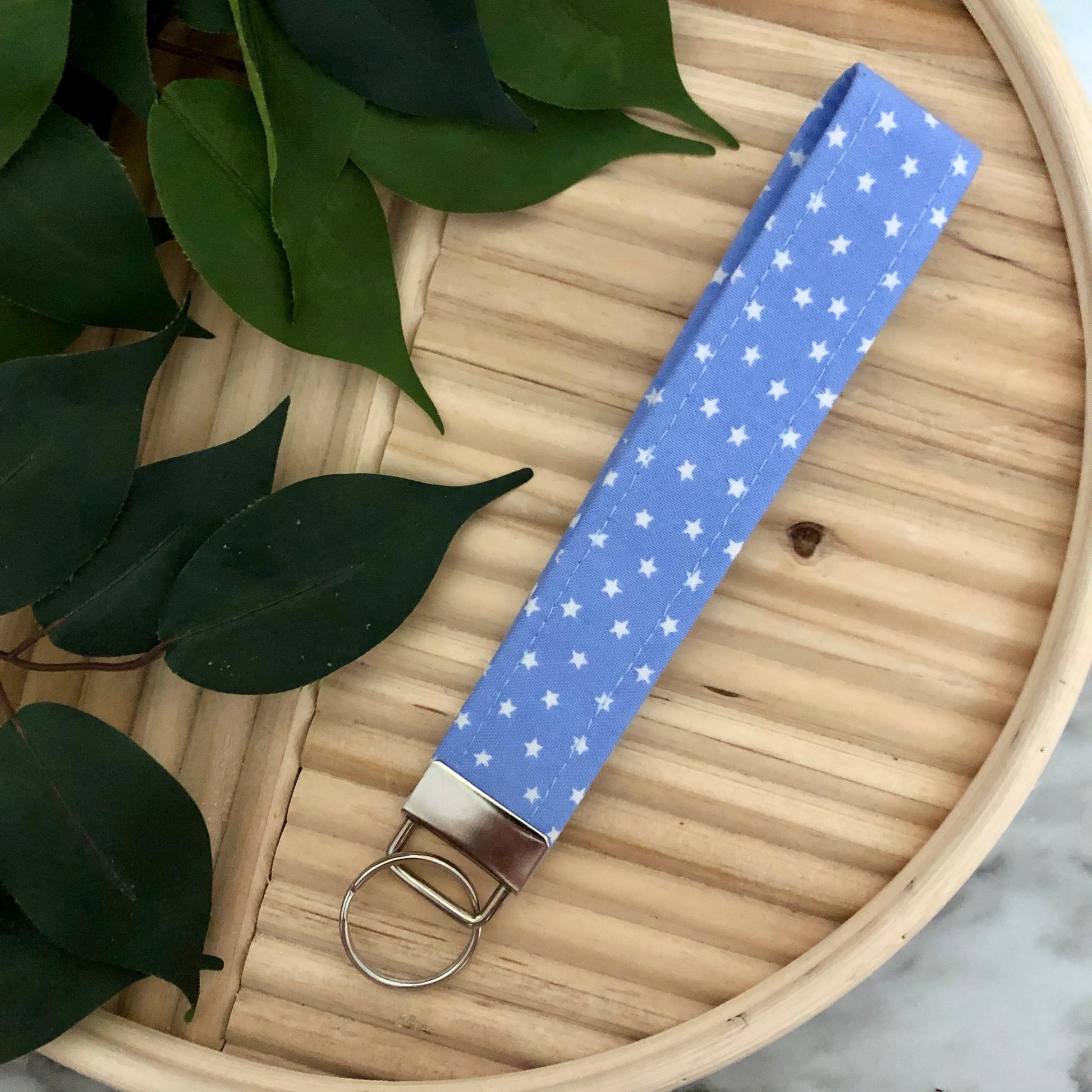 Peri Stars Print Fabric Wristlet Keychain, Key Fob