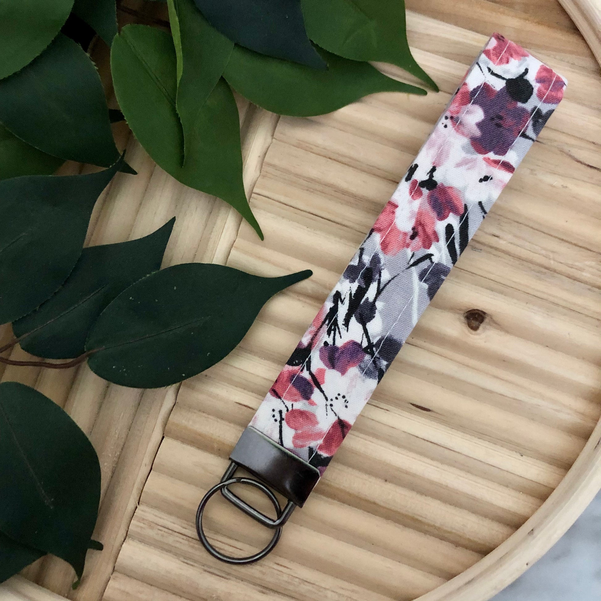 Abstract Berry Floral Print Fabric Wristlet Keychain, Key Fob