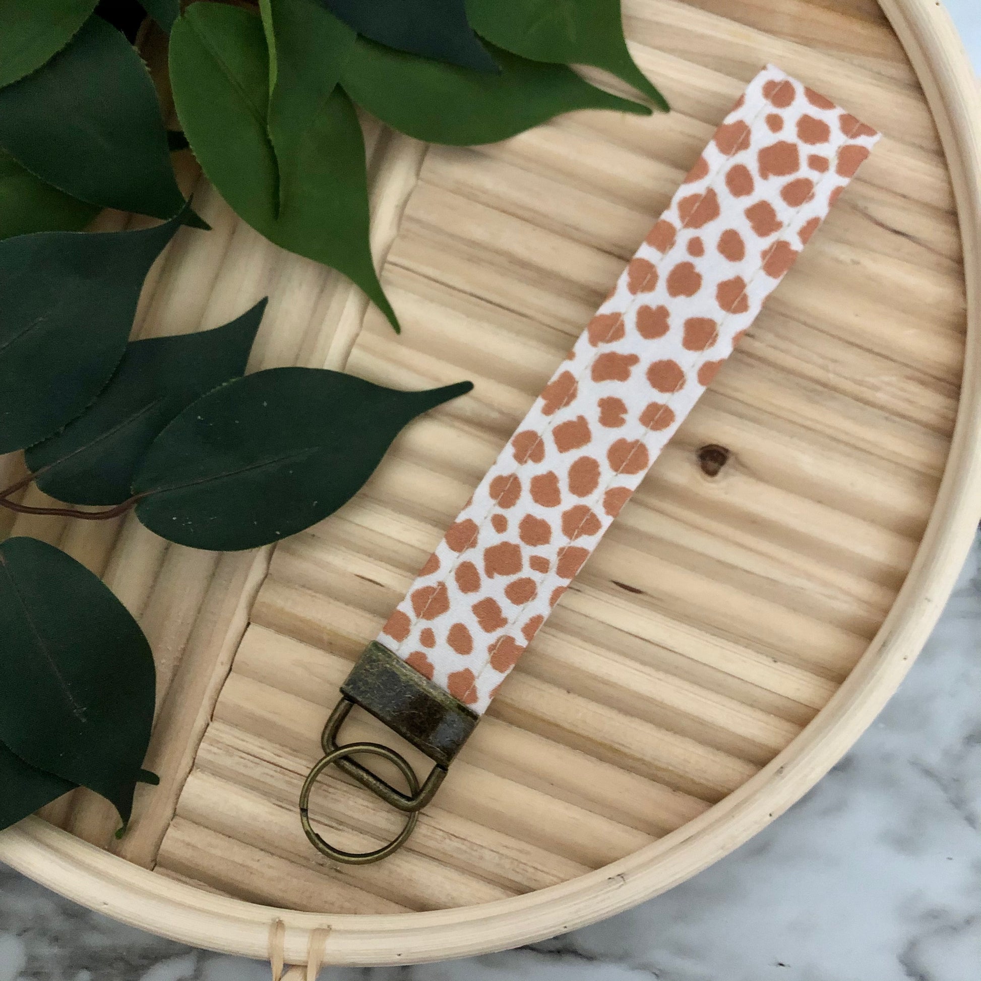 Mini Giraffe Print Fabric Wristlet Keychain, Key Fob