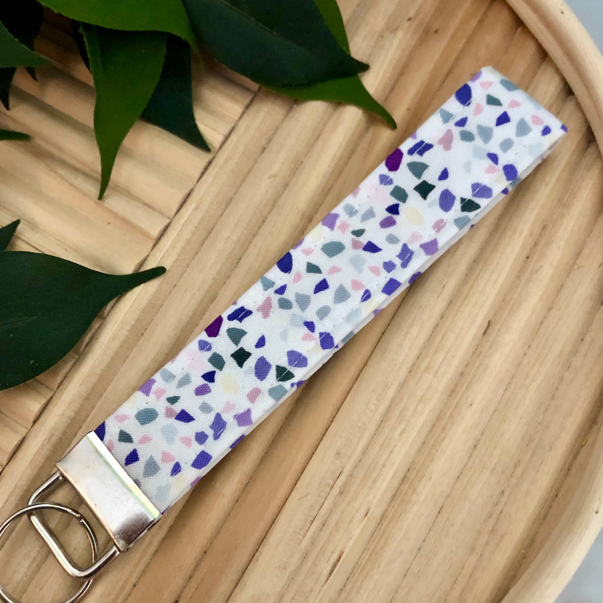 Purple Terrazzo Print Fabric Wristlet Keychain, Key Fob