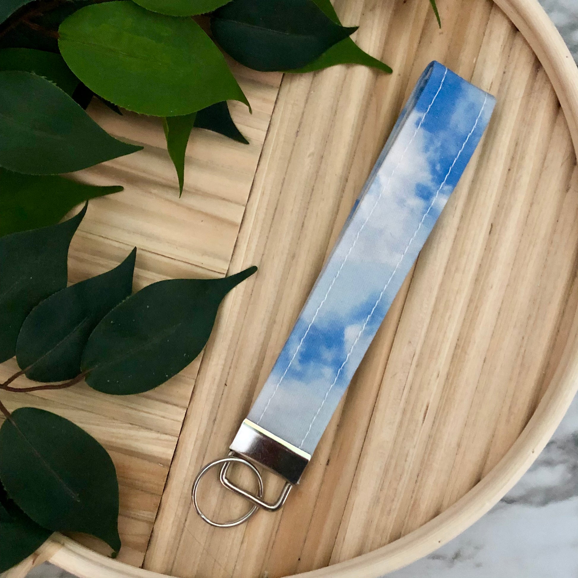 Cloudy Sky Print Fabric Wristlet Keychain, Key Fob