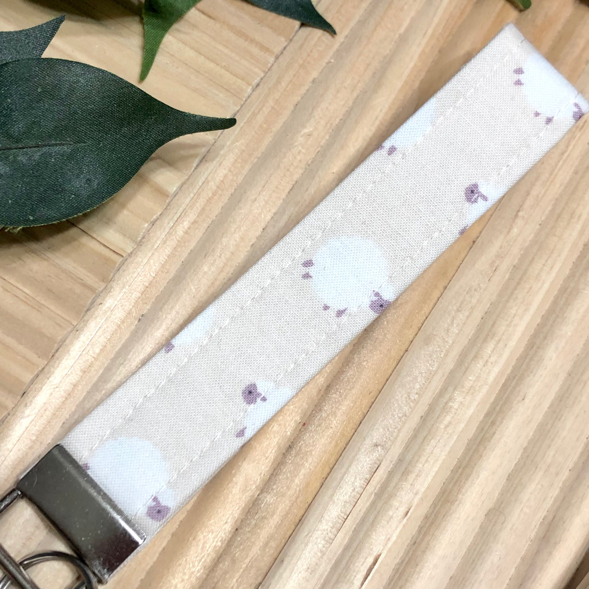 Sheep Print Fabric Wristlet Keychain, Key Fob