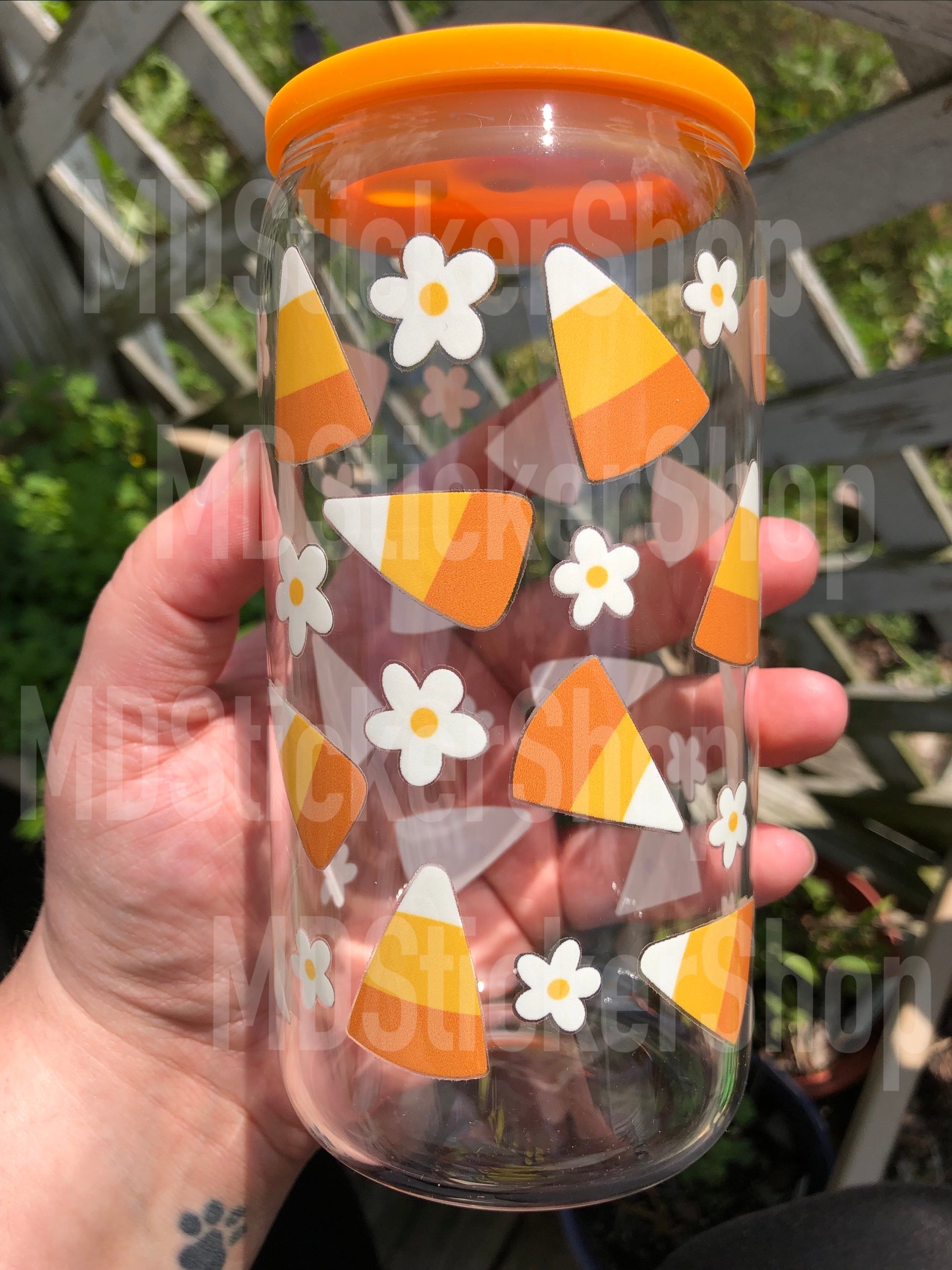 Candy Corn Daisy Halloween Beer Can Glass Cup